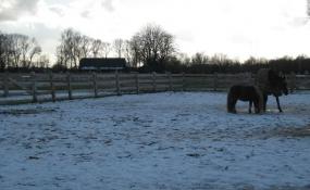 Op maat hebben we palen en planken geleverd voor afrastering van enkele paardenweiden. Het past schitterend in het landschap.