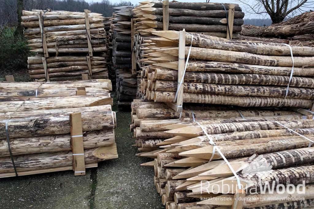 Volop op voorraad: RobiniaWood geschilde palen