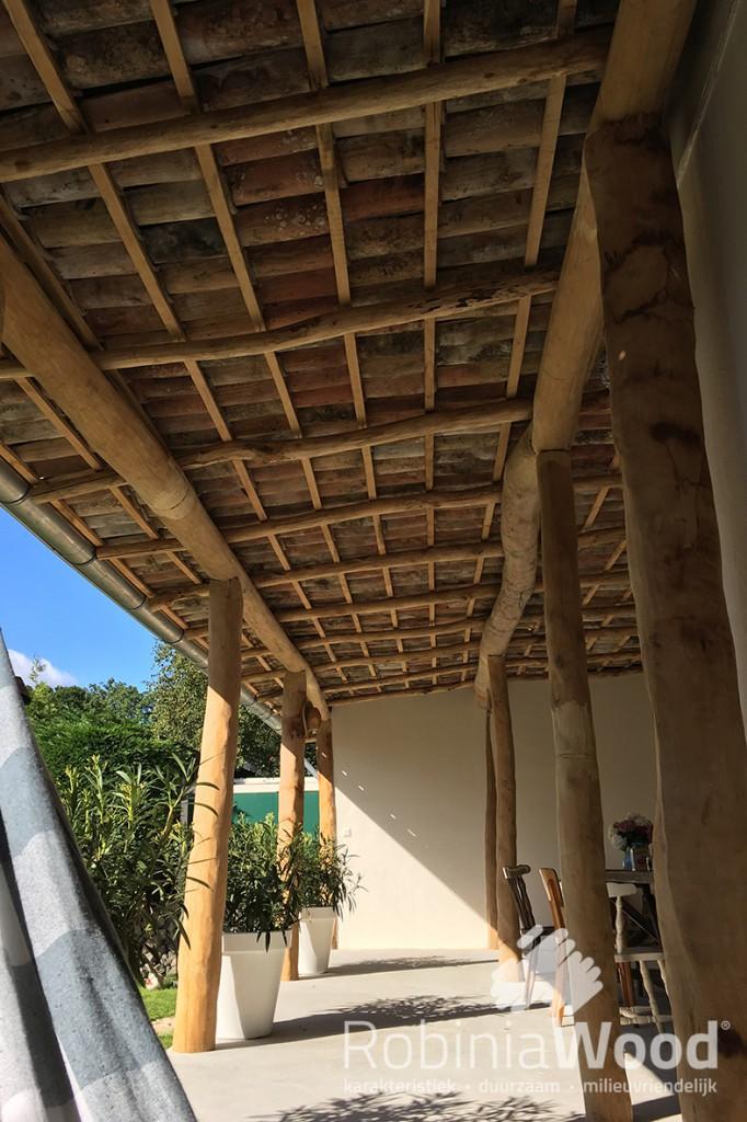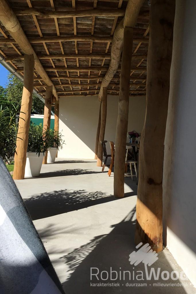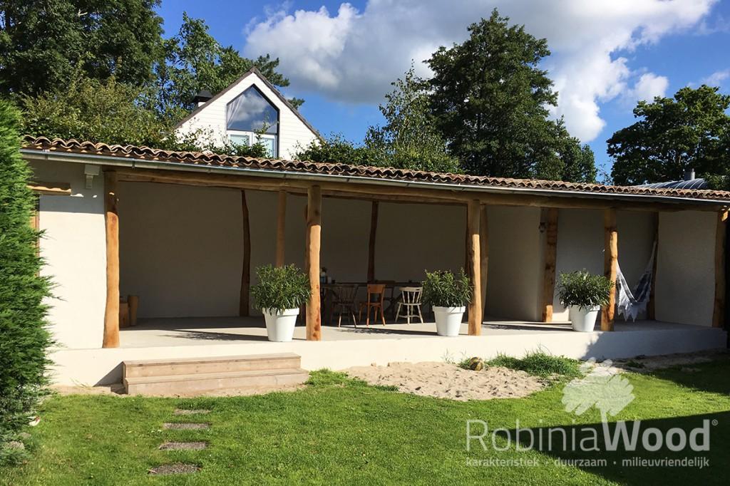 Robinia, de Nederlandse benaming is ook wel acacia. Voor houtbouw constructies zijn eiken balken algemeen bekend, maar met deze prachtige RobiniaWood bezaagde palen worden ook schitterende constructies gemaakt.
