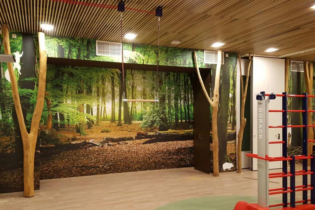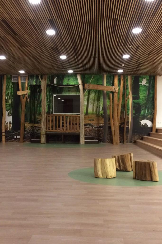 Passend bij de al bestaande huisstijl van de school is er gekozen voor een natuurlijke sfeer.
