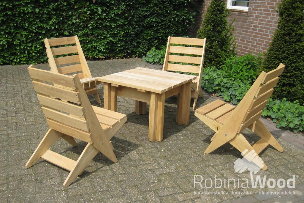 De stoelen zijn inklapbaar en door de hoge rugleuning zitten ze heerlijk! Gemaakt van ons duurzame en milieuvriendelijke Robinia en daardoor ook nog eens een bewuste keuze.